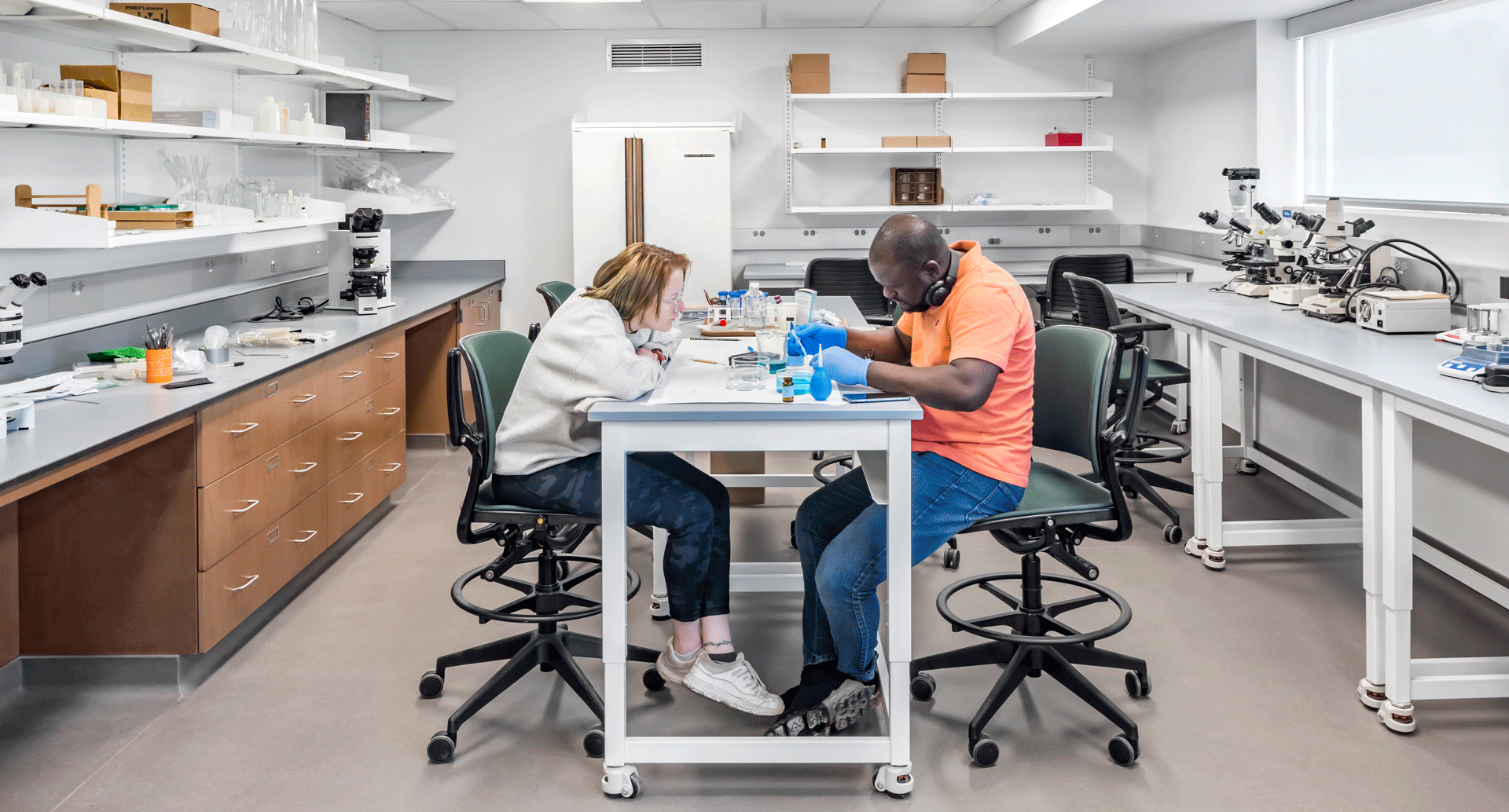 The renovated spaces span two teaching labs, 10 research suites, a shared equipment room, preserved specimen collection space for the region, a graduate student space, offices and mechanical space. The increased labs will support research in the biomedical field including research on vaccines, cancers, infectious diseases and genetic diseases.